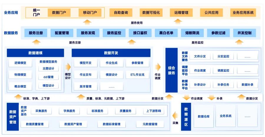 數(shù)據(jù)治理:將數(shù)據(jù)標(biāo)準(zhǔn)管理、元數(shù)據(jù)管理、數(shù)據(jù)安全、數(shù)據(jù)質(zhì)量等集成到數(shù)據(jù)開發(fā)過程中,進(jìn)行強(qiáng)管控。在設(shè)計(jì)態(tài)、開發(fā)態(tài)實(shí)現(xiàn)數(shù)據(jù)標(biāo)準(zhǔn)化、規(guī)范化,提升數(shù)據(jù)質(zhì)量,減輕事后數(shù)據(jù)治理的壓力;