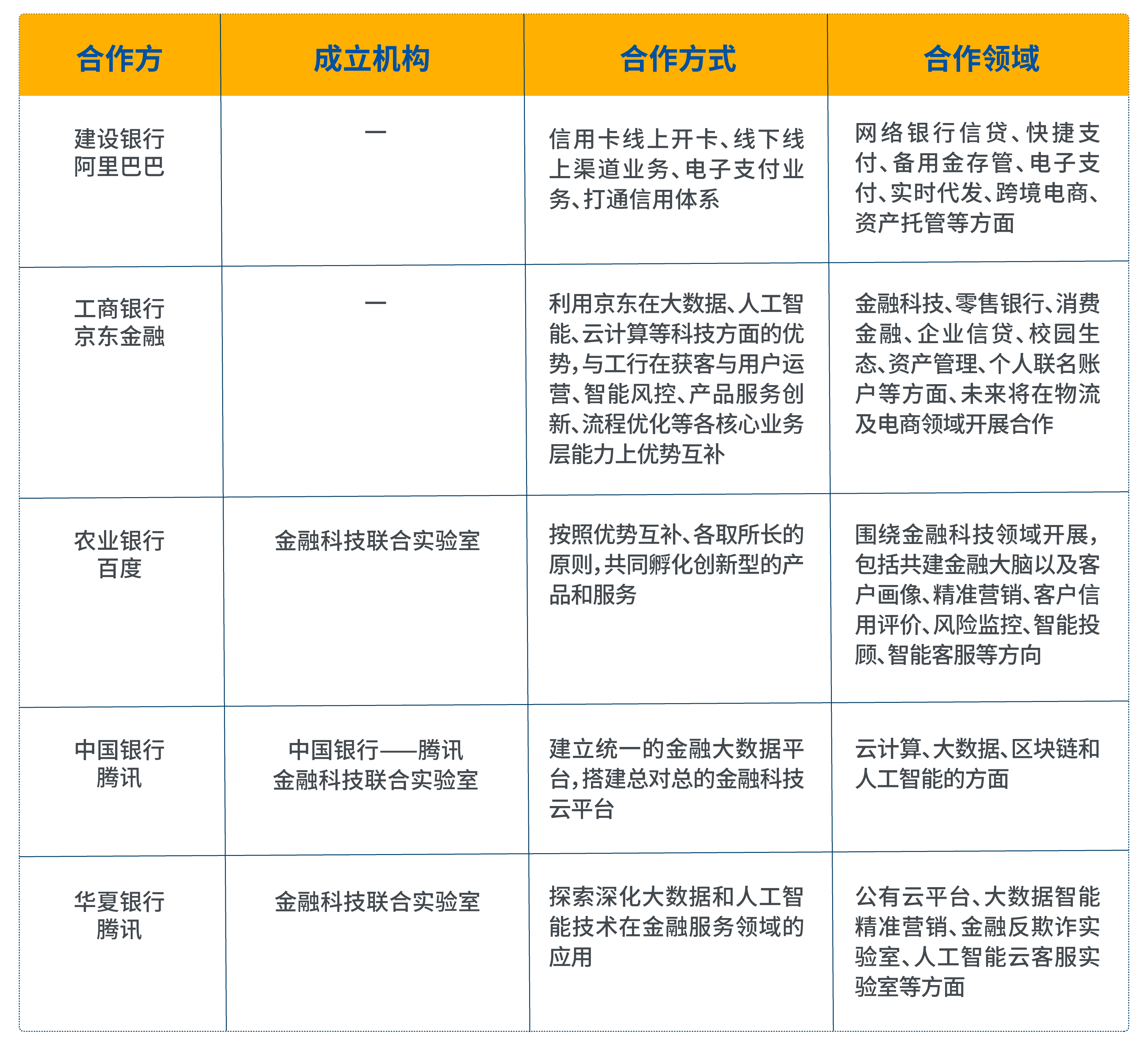 銀行與互聯(lián)網(wǎng)巨頭合作方式與領(lǐng)域