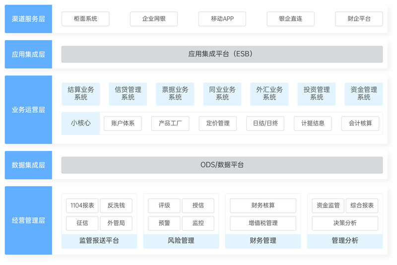 基于商業(yè)銀行核心架構(gòu)體系,采用模型化、組件化、參數(shù)化設(shè)計(jì)思想,通過微服務(wù)、分布式、云計(jì)算等新技術(shù)平臺(tái),提供“以客戶為中心,以產(chǎn)品為驅(qū)動(dòng),集全面業(yè)務(wù)管理、網(wǎng)上金融服務(wù)、監(jiān)督?jīng)Q策于一體”的一站式金融解決方案,為財(cái)務(wù)公司搭建一體化的金融服務(wù)平臺(tái),并支撐全流程的業(yè)務(wù)管理體系。