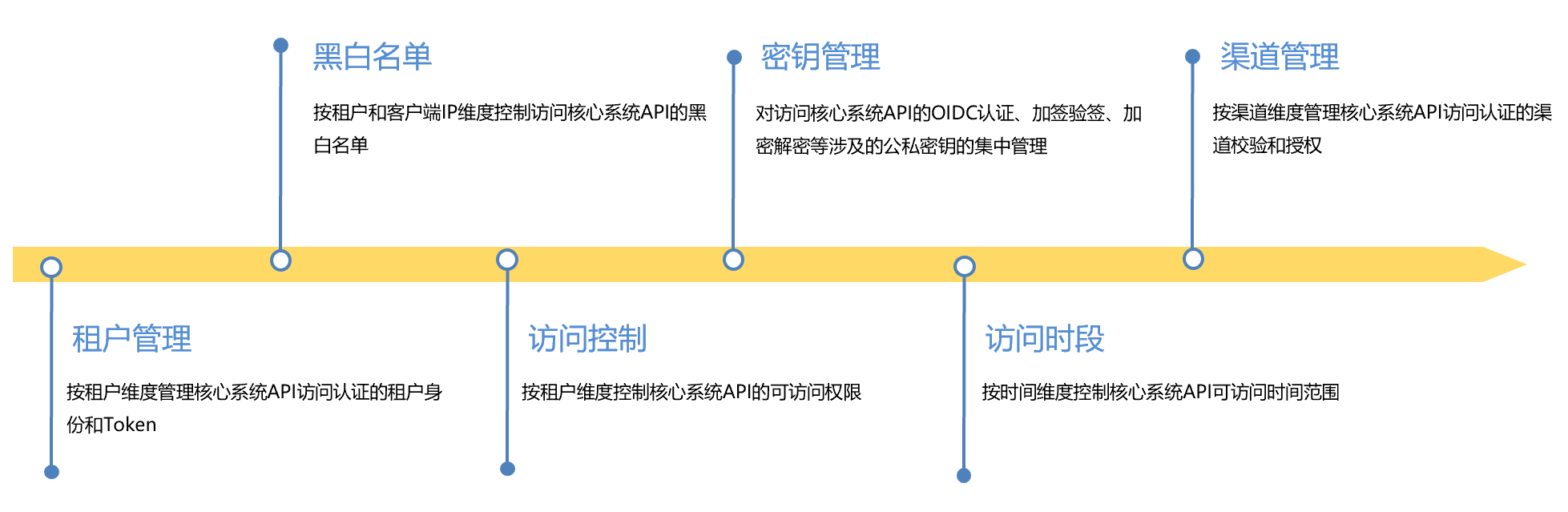 ●  安全控制體系:提供黑白名單、訪問控制、密鑰、租戶認證等多種安全體系,其中密鑰又從加密解密、加簽驗簽和認證授權等多種方式來保證API訪問的安全性。