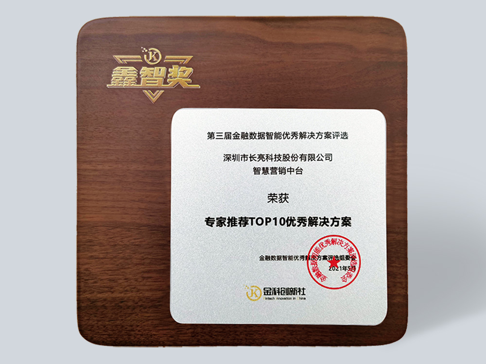 經(jīng)過5場線上答辯,以及來自國家科技評估中心、中國人民銀行以及銀行、保險(xiǎn)、證券、基金等金融機(jī)構(gòu)的52位評審專家和陪審專家兩輪打分、點(diǎn)評,長亮科技智慧營銷中臺憑借在數(shù)據(jù)標(biāo)簽、畫像、算法模型、營銷活動、營銷模板等方面的先進(jìn)性與成熟性,獲得“專家推薦TOP10優(yōu)秀解決方案”、“營銷創(chuàng)新優(yōu)秀解決方案”兩項(xiàng)大獎。