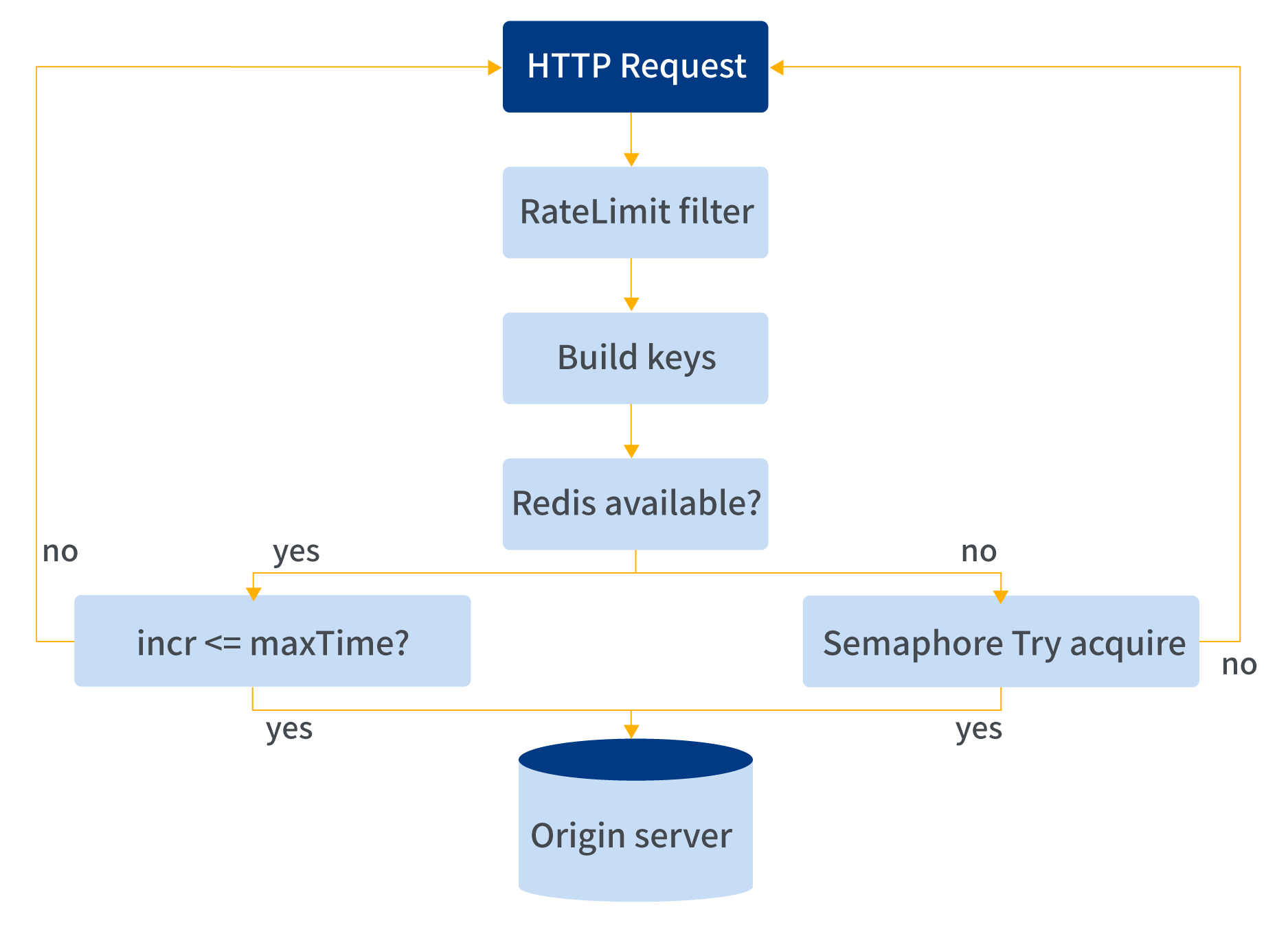 ? 當Redis不可用時,則使用JVM級別的實例限流。會直接從當前實例的緩存中獲取一個Semaphore信號量,并嘗試獲取其許可,當獲取成功則表示限流通過,反之拋出限流異常。